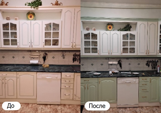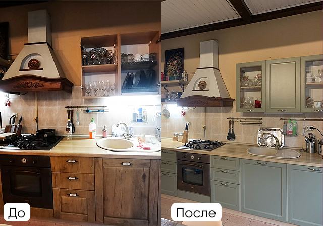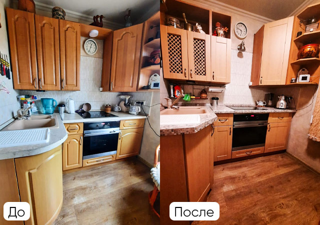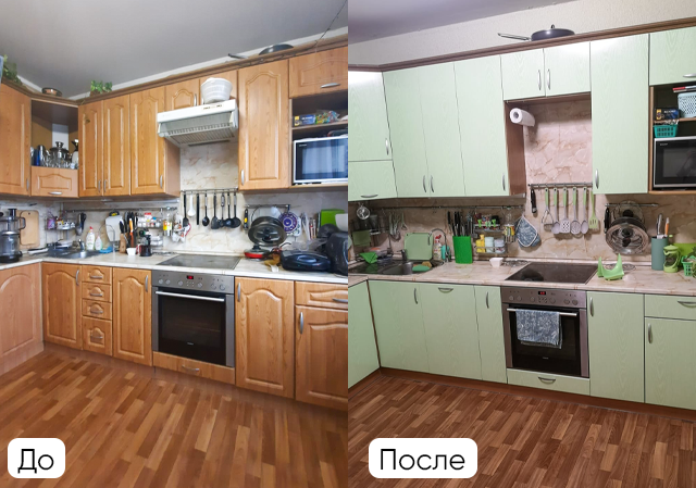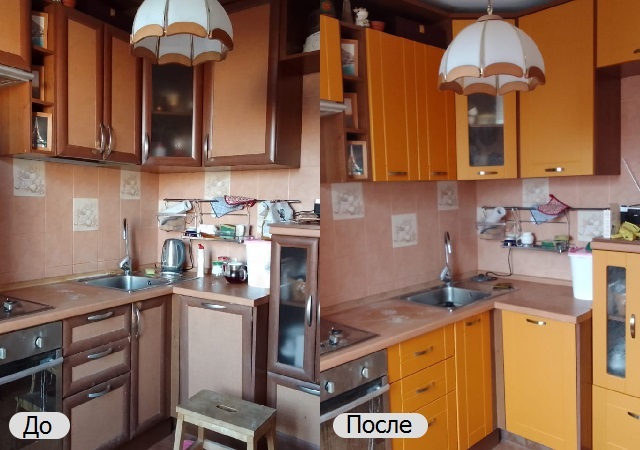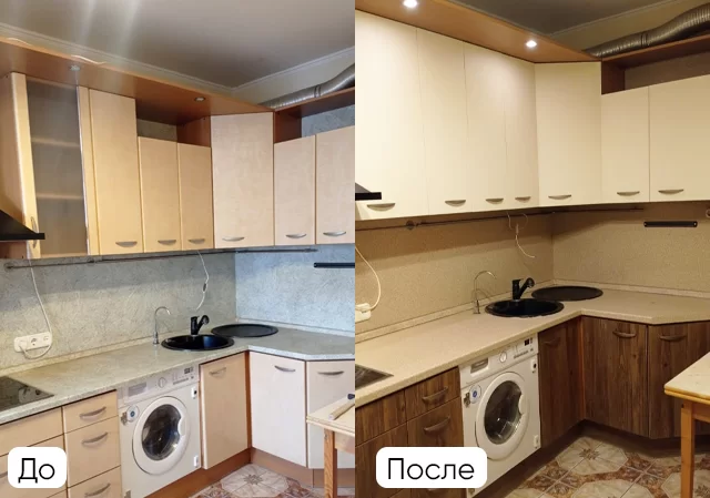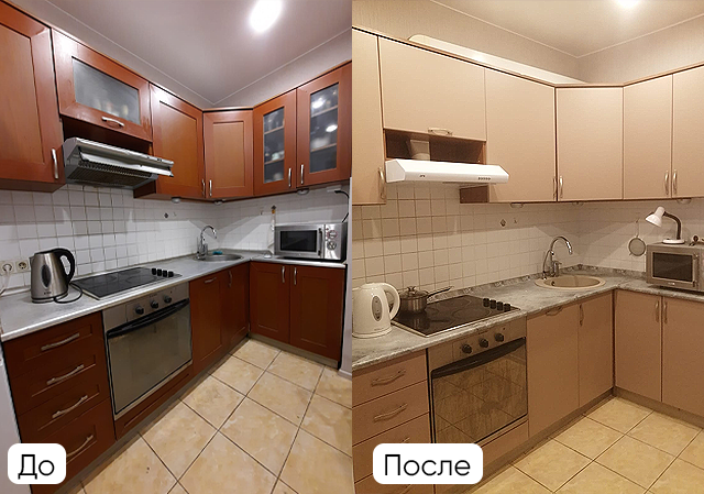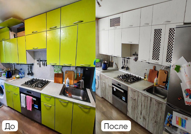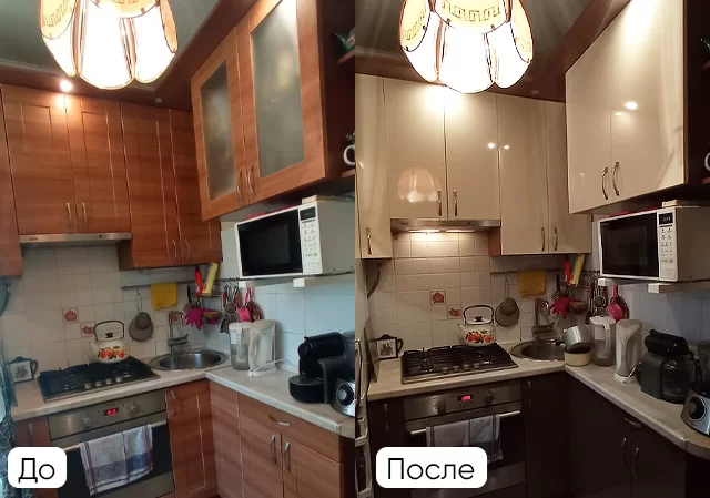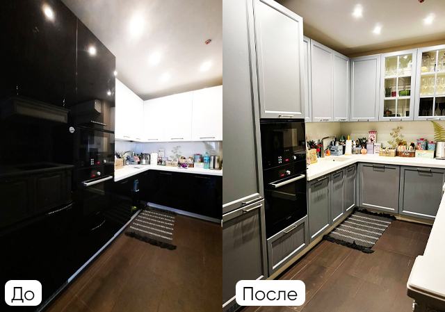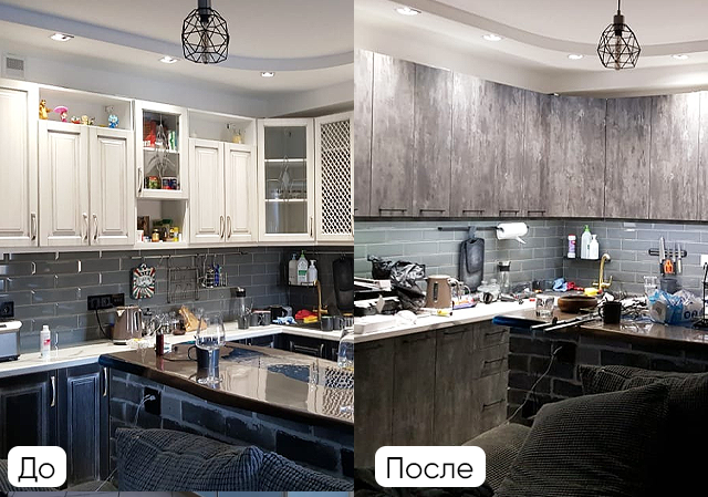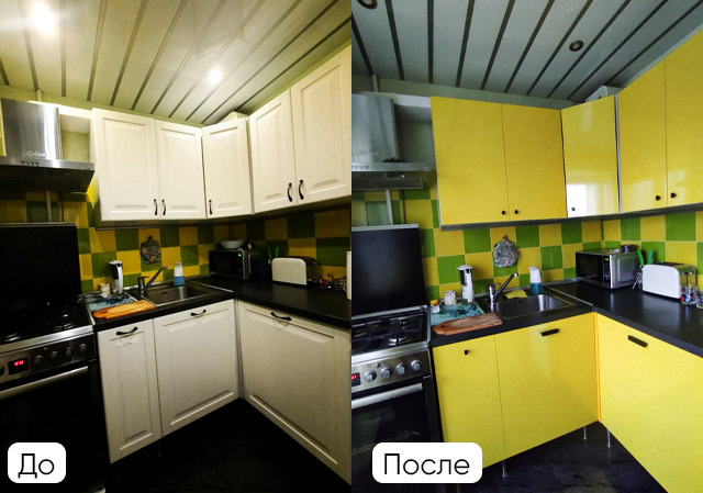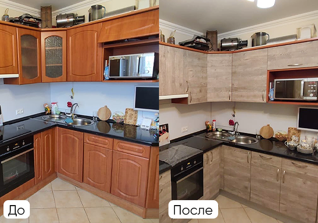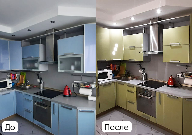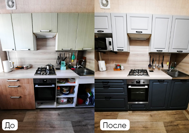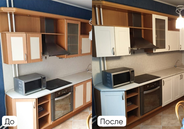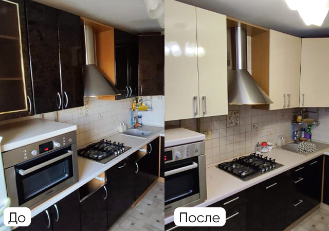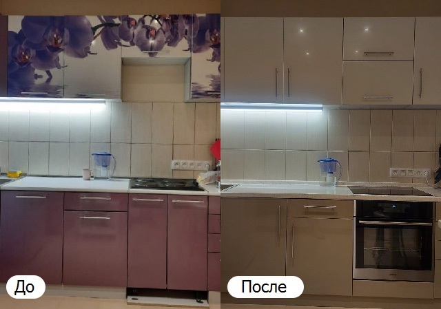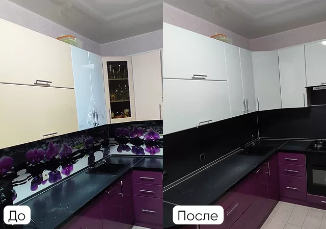 Замена верхних фасадов в ПВХ пленке Decoline(глянец) + фартук